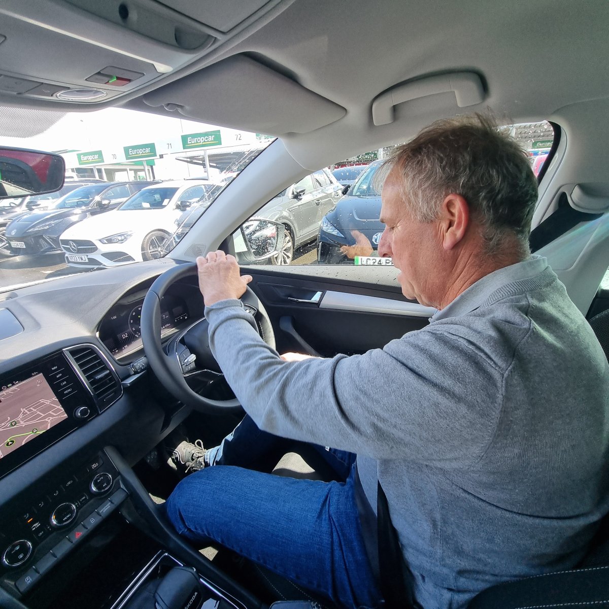 Jo qui prend en main la conduite à gauche